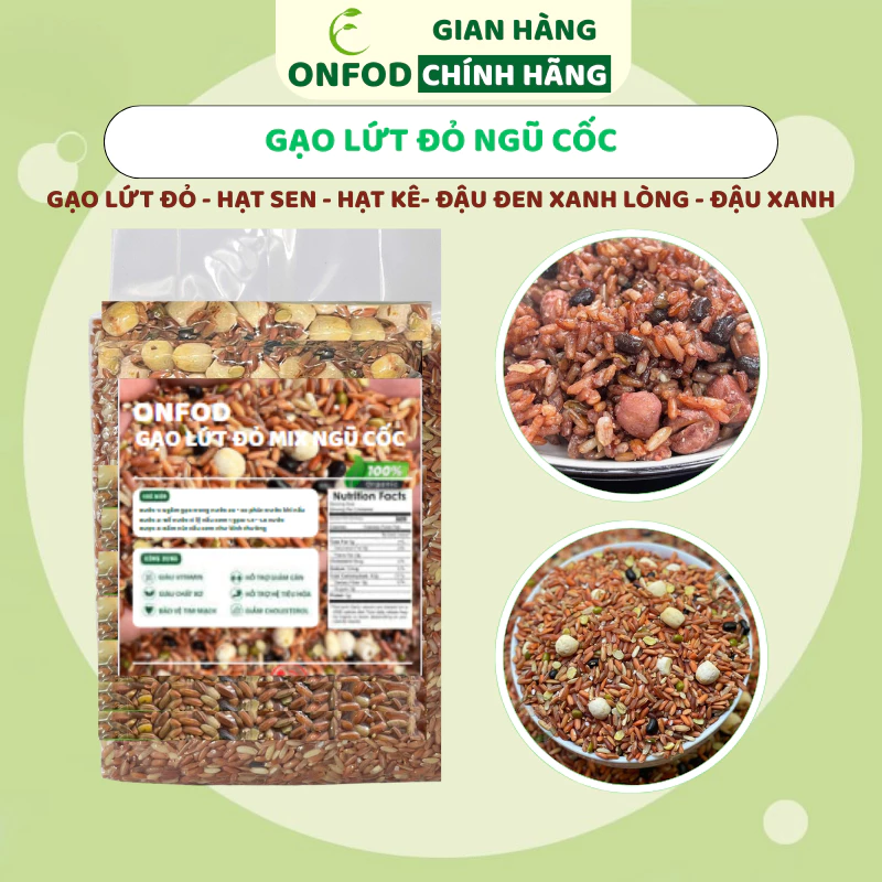 Gạo lứt dẻo đỏ hữu cơ mix ngũ cốc hạt đậu đen, đậu xanh, hạt sen, hạt kê ONFOD, gạo lức giảm cân ăn kiêng cho người tiểu đường, gym, yoga, bà bầu bé ăn dặm 1kg